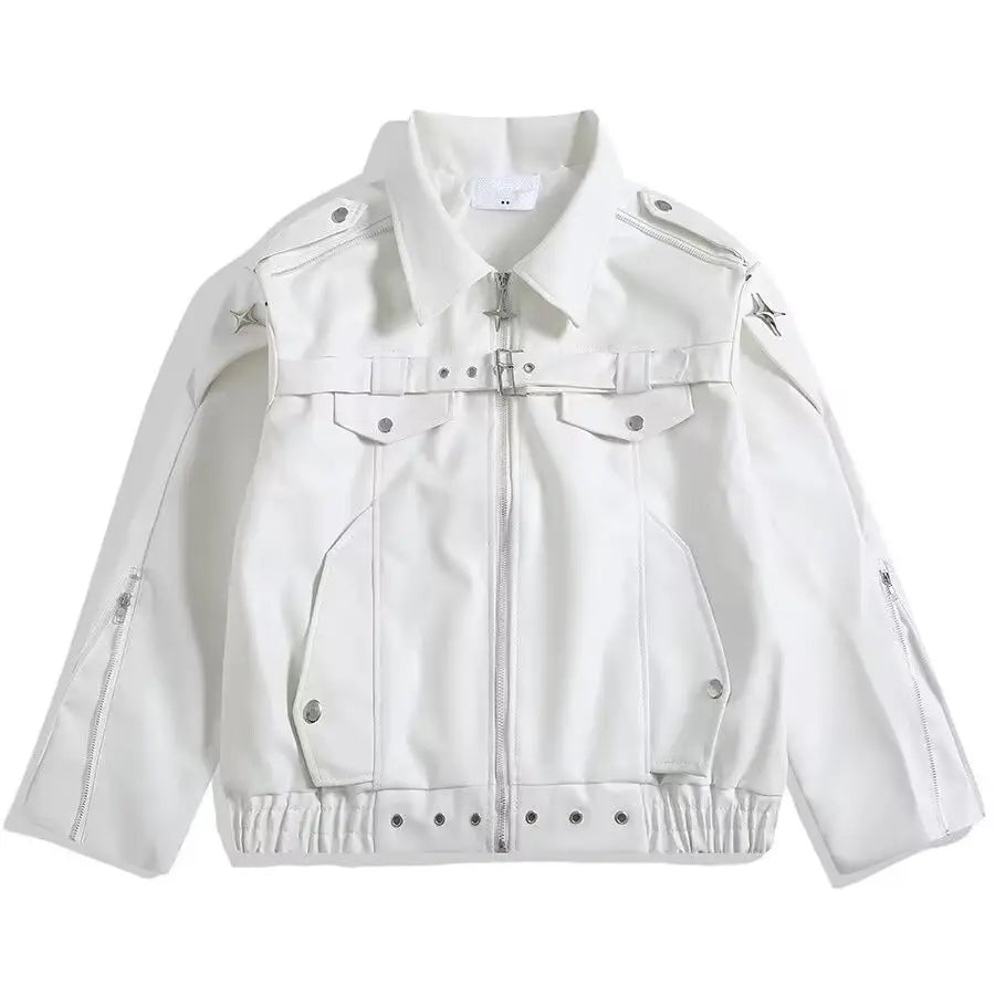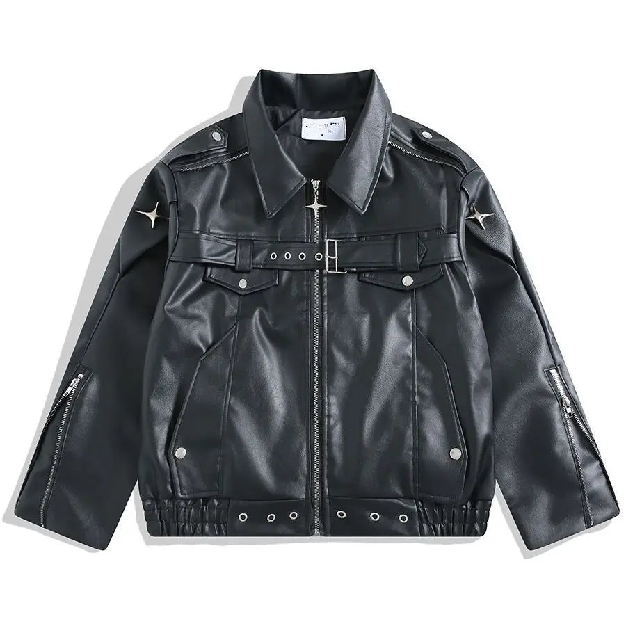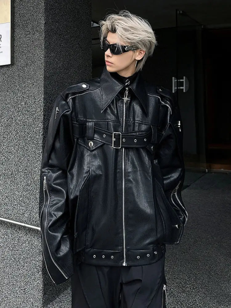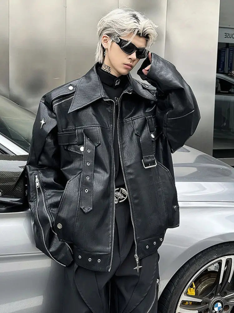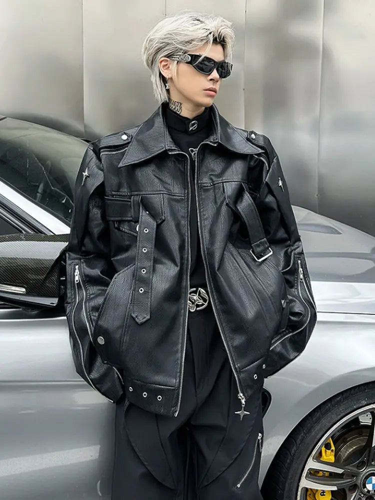 Ga voor een gedurfde en assertieve look met dit herenjack van imitatieleer, perfect voor de herfst. Met zijn praktische zakken, relaxte pasvorm en Y2K-geïnspireerde motor-/bikerstijl is hij ideaal voor dagelijkse uitjes of stijlvolle streetwearoutfits.