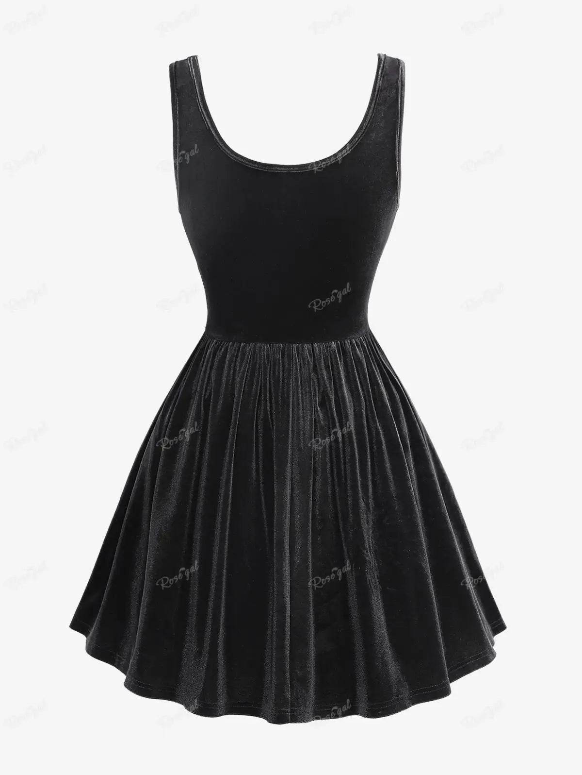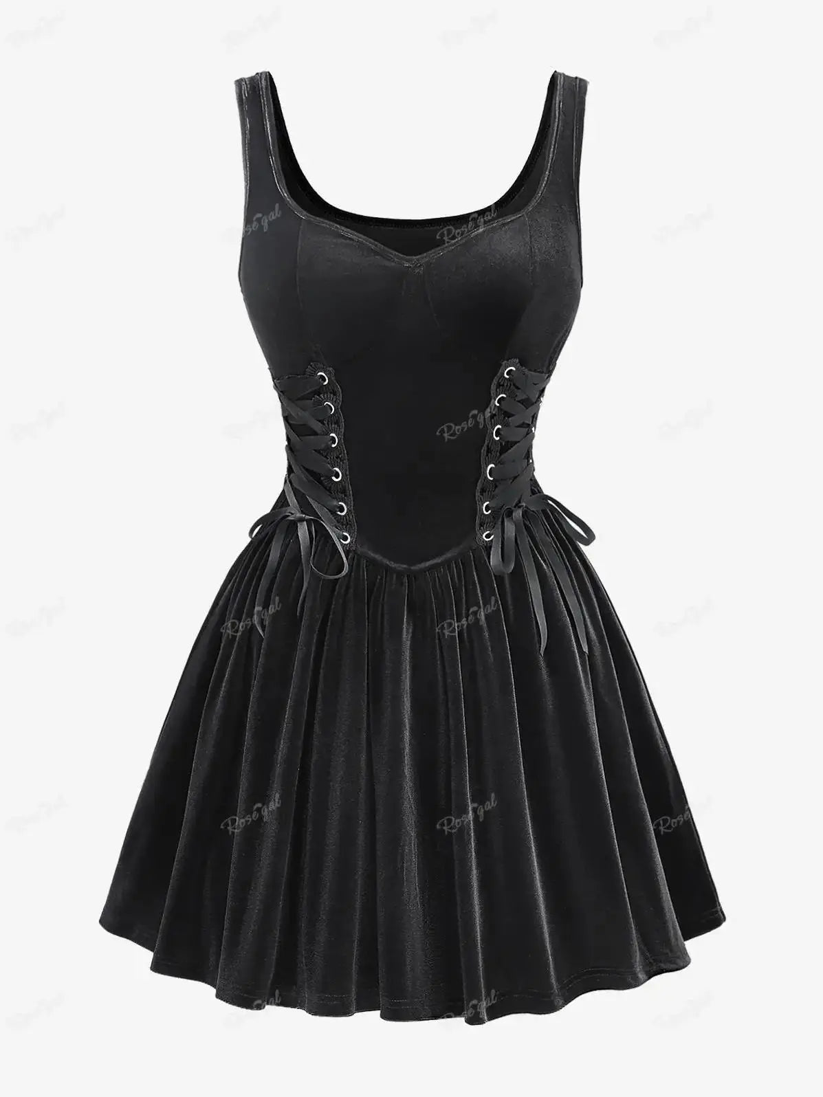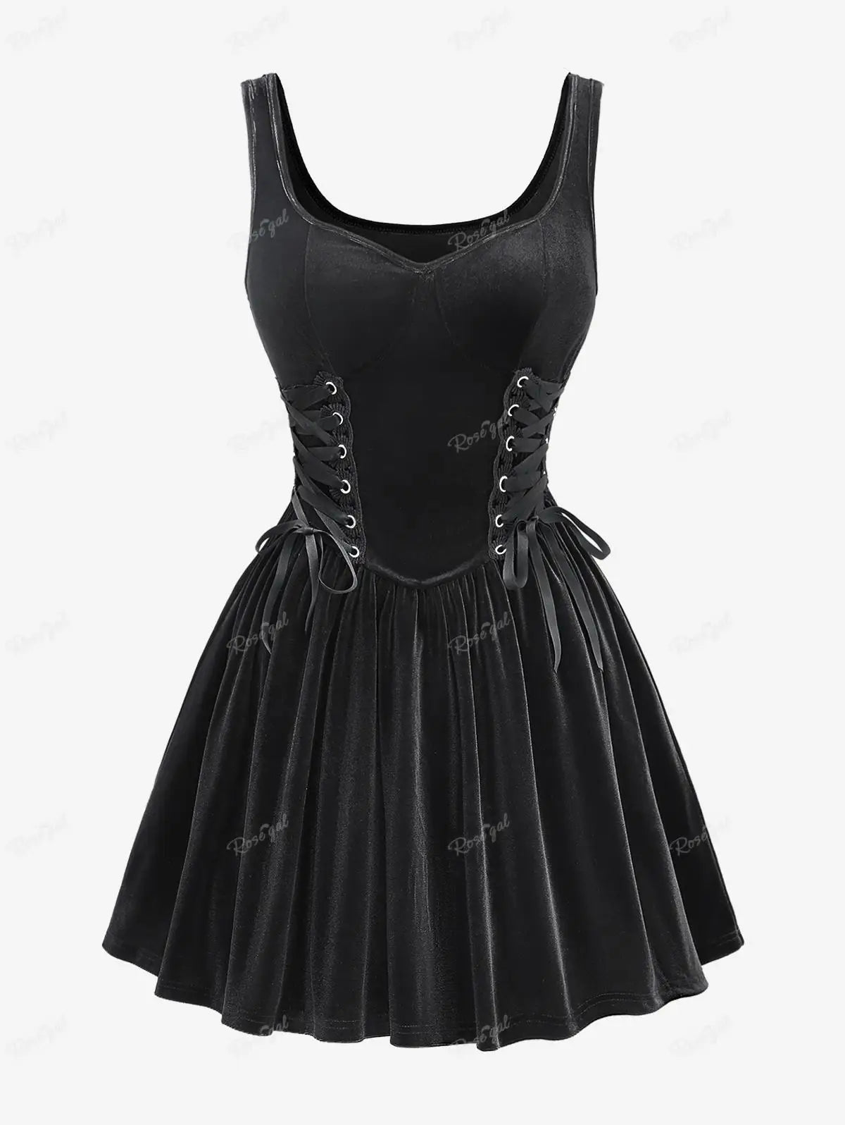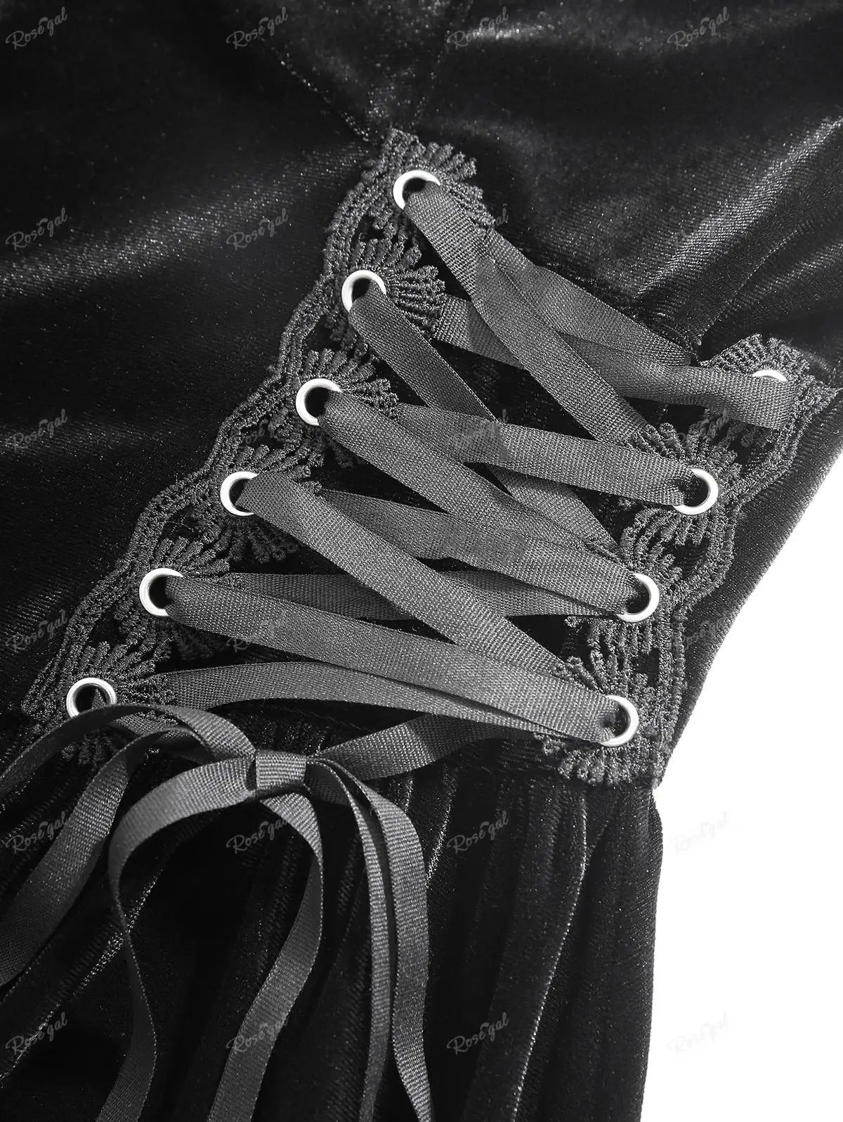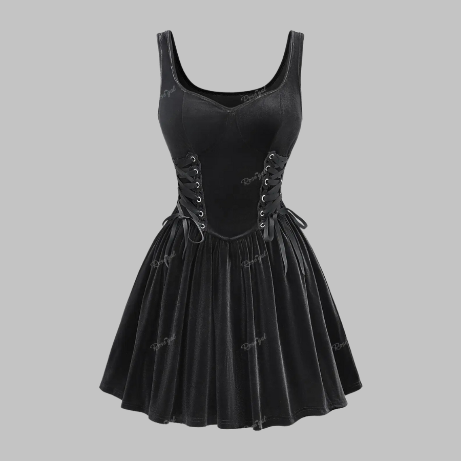 Plus-size zwarte gotische jurk met korset en uitlopende rok
